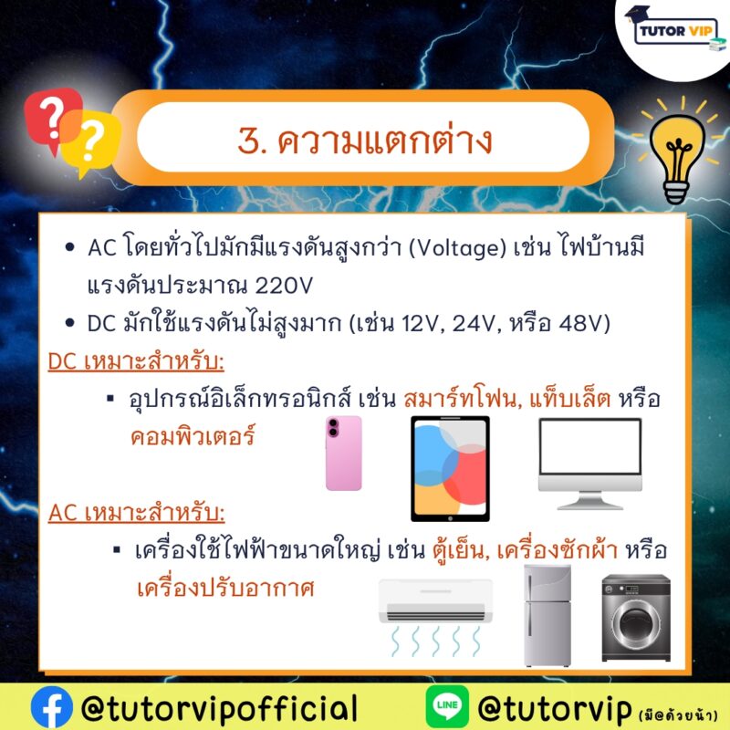 สวัสดีน้องๆ ทุกคน บทความนี้ พี่ TUTOR VIP จะมาแนะนำเกี่ยวกับ “ไฟฟ้ากระแสตรง(DC) และกระแสสลับ(AC)” ทำไมตามบ้านเรือนถึงใช้ไฟฟ้ากระแสสลับ แล้วไฟฟ้ากระแสตรงใช้สำหรับอะไร ความแตกต่างของทั้งสองคืออะไร  มาหาคำตอบในบทความนี้กันเลย!