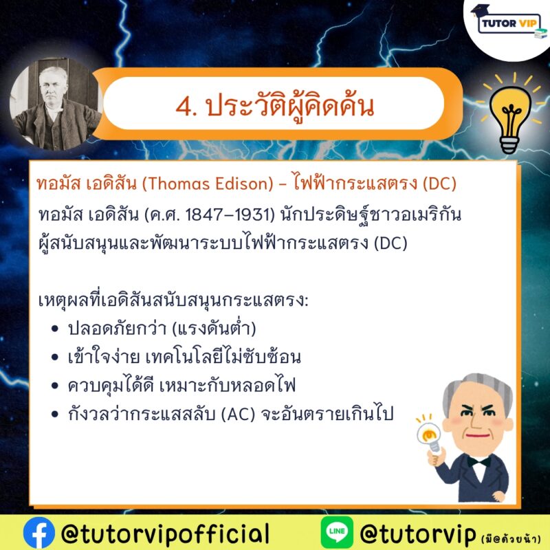• ทอมัส เอดิสัน (Thomas Edison) – ไฟฟ้ากระแสตรง (DC)