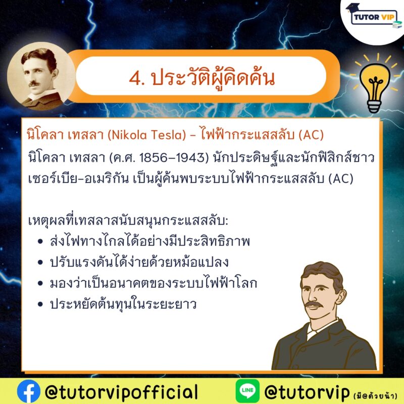 • นิโคลา เทสลา (Nikola Tesla) – ไฟฟ้ากระแสสลับ (AC)