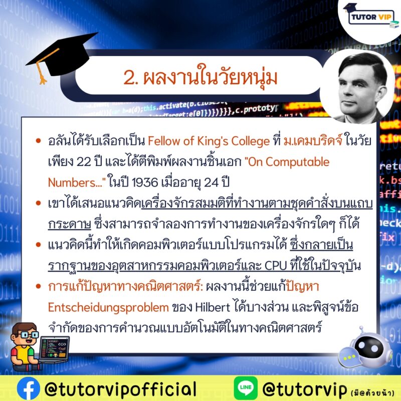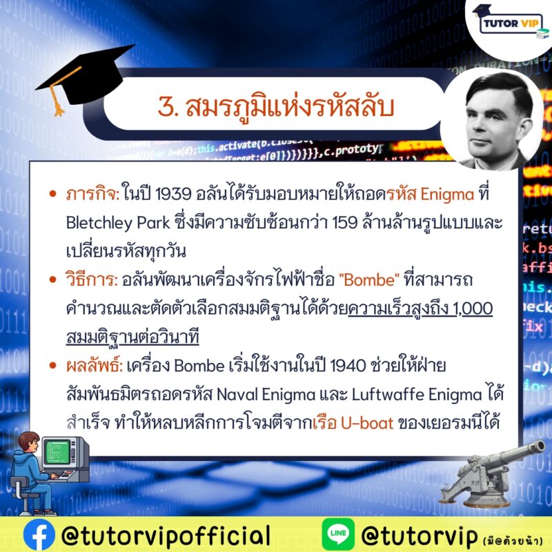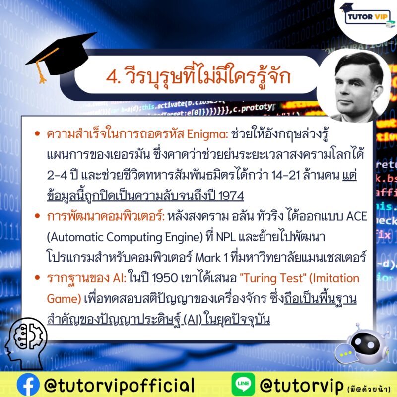 สวัสดีน้องๆ ทุกคน บทความนี้ พี่ TUTOR VIP จะมาแชร์เรื่องราวของ “อลัน ทัวริง“ ผู้ที่ได้รับการยกย่องเป็นบิดาแห่งวิทยาการคอมพิวเตอร์และปัญญาประดิษฐ์ (AI) มาศึกษาประวัติที่น่าสนใจของเขาไปพร้อมกันในบทความกันเลย!