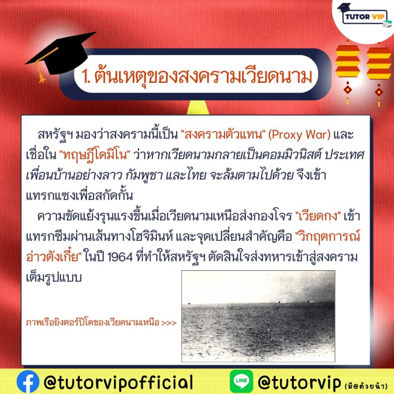 สวัสดีน้องๆ ทุกคน บทความนี้ พี่ TUTOR VIP จะพาน้องๆ ไปศึกษาเกี่ยวกับ สงครามเวียดนาม สงครามครั้งใหญ่ที่เกิดขึ้นใกล้กับประเทศไทยของเรา ถ้าพร้อมแล้วไปศึกษาพร้อมกันในบทความกันเลย!
