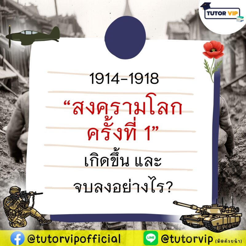 สวัสดีน้อง ๆ ทุกคน บทความนี้ พี่ TUTOR VIP จะมาสรุปเกี่ยวกับ “สงครามโลกครั้งที่ 1” ซึ่งเป็นสงครามครั้งใหญ่ที่ส่งผลกระทบไปทั่วโลก รวมถึงประเทศไทยของเราด้วย ถ้าพร้อมแล้วตามไปศึกษาพร้อมกันเลย!